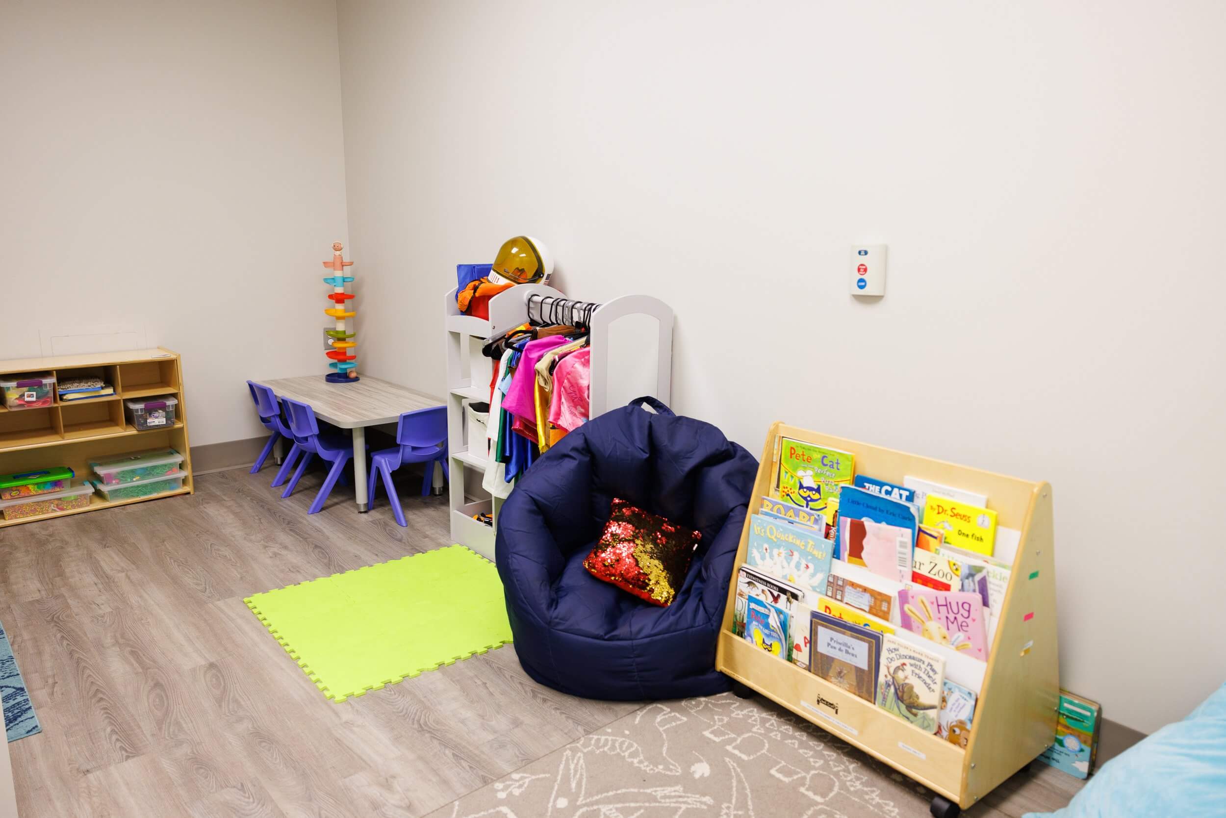 Our ‘pretend play’ room is a child-favorite for learning new skills through dress-up and make believe.